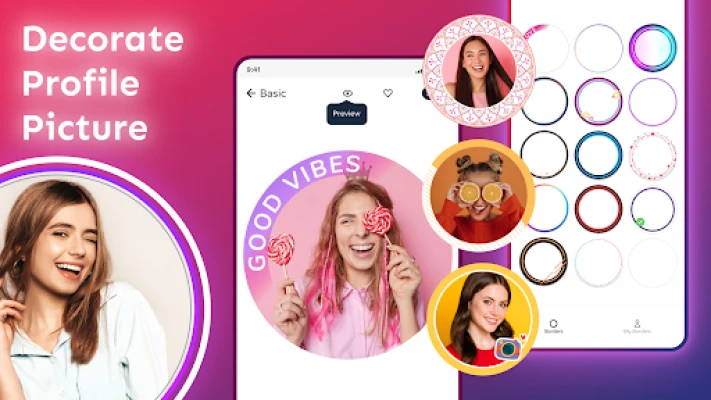 👉 Profile Photo Border messaging apps: Add a beautiful frame to your profile photo and easily create an attractive profile picture!